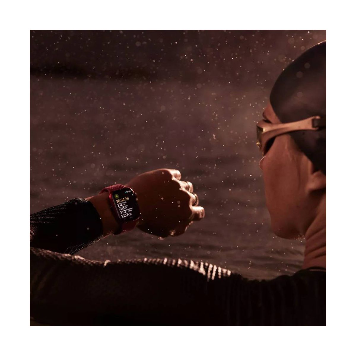 ¹⁴Apple Watch Series 9 has a water resistance rating of 50 meters under ISO standard 22810:2010. This means it may be used for shallow-water activities like swimming in a pool or ocean. Apple Watch Series 9 should not be used for scuba diving, waterskiing, or other activities involving high-velocity water or submersion below shallow depth. Water resistance is not a permanent condition and can diminish over time. For additional information, see support.apple.com/HT205000. Apple Watch Series 9 is also rated IP6X dust resistant.