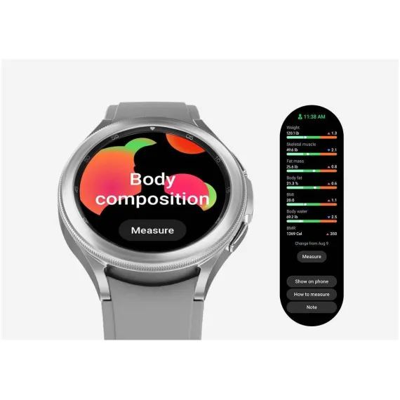 Get ready to crush your wellness goals - Galaxy Watch4 is the first smartwatch ever to offer body composition data right on your wrist. NO more waiting in line for a reading at the gym. On your own schedule, you can now get readings on body fat, skeletal muscle, body water, basal metabolic rate and Body Mass Index. ²