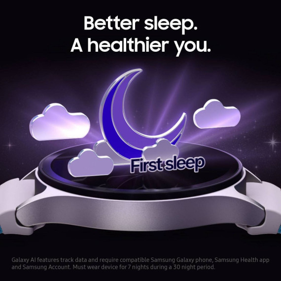 "Your favorite new health and wellness companion is here — Galaxy Watch7. Enhanced with Galaxy AI,1 this Watch has everything you need to keep you moving toward your health goals. Wake up on the right side of the bed every morning with an Energy Score1 that helps you understand your well-being better. Hit your morning workout while staying in touch with your world — make calls from your Watch and quickly respond to texts on the go with Suggested Replies.2 Then hone in on your heart health during your workout with improved Heart Rate Tracking,3 and improve each day with personalized Wellness Tips4 viewable right on your Galaxy smartphone.5 Plus, stay in the zone by streaming your favorite playlist or podcast from your Watch to your Galaxy Buds.6